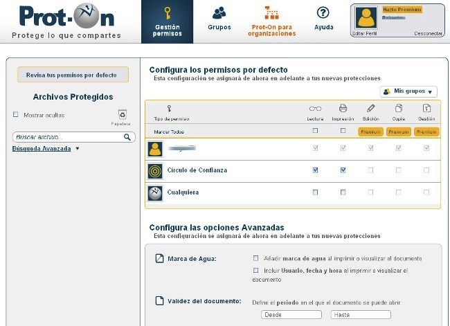 En este sentido, la aplicación permite también enviar documentos protegidos a destinatarios que no tengan instalada la aplicación, mediante un visor para acceder al contenido previo permiso. Además de trabajar en cualquier plataforma (Windows, iOS, Android, etc.), esta solución proporciona al usuario un control activo sobre las copias u otras acciones que se realicen en los archivos protegidos, con la posibilidad de conceder, restringir o bloquear su acceso incluso mucho después de haberlos enviado, e incluso establecer fechas de caducidad y marcas de agua, entre otras.