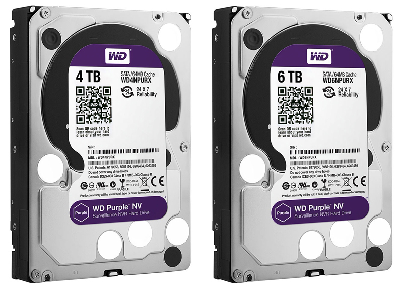 Con una capacidad de 4 o 6 TB, los discos duros WD Purple NV de 3,5 pulgadas han sido diseñados para dar respuesta a la demanda de los sistemas de videovigilancia en red escalables (NVR). Disponen de un mayor número de bahías que la serie estándar Purple, para discos duros y cámaras conectadas entre sí, lo que implica una mayor demanda de capacidad de almacenamiento y durabilidad de los discos. La mejora en la capacidad de estas unidades permite también periodos de grabación de vídeo más largos para análisis y referencia.
