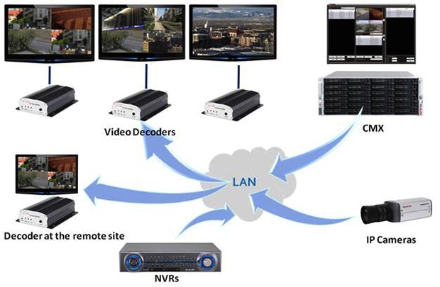 En el caso de aplicaciones para la gestión de sucursales u oficinas, se requiere un monitor remoto para las cámaras IP, NVR y DVR igual que el que se usa en el modelo VD022, que puede decodificar hasta 16 canales de vídeo actuando como una matriz.