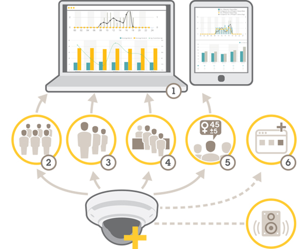 Con esta solución de optimización de tiendas, la combinación de cámaras de red y productos de audio de Axis con el software de analítica e inteligencia empresarial aportan un alto nivel de precisión en campos como el conteo de personas, la detección de edad y género, los cálculos de ocupación de la tienda y la supervisión de las colas.
