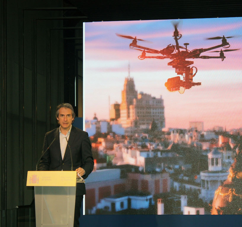 Plan Drones Inigo de la Serna DroniberiaEl primer eje se enmarca dentro del ámbito normativo, con el objetivo de lograr una implantación ágil y eficiente de la normativa aprobada el pasado mes de diciembre, así como la elaboración de una normativa europea (actualmente en fase de definición).