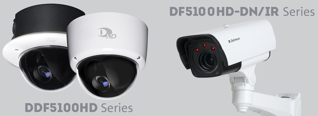 El modelo DF5100HD-DN/IR se ha diseñado en formato caja (box) para su montaje en pared. Disponible en versiones de 2 ó 4 megapíxeles, cuenta con iluminación infrarroja uniforme gracias a un Led de alto rendimiento de 850 nanómetros, mejorando la sensibilidad de la cámara para operar con alta calidad de imagen en entornos críticos 24/7. Disponible también en 2 y 4 megapíxeles, la cámara tipo domo DDF5100HD se utiliza con cúpula.