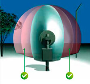 Este tipo de antenas crean un lóbulo de grandes dimensiones, aunque este sea el objetivo final del equipo, existen ciertos elementos del propio perímetro que podrían afectar al funcionamiento de las barreas (vallado, paredes, vegetación. etc). Es justo en este tipo de situaciones donde es necesario el FSTD, ya que permite discriminar las zonas mas exteriores del lóbulo, consiguiendo obtener un nivel de señal óptimo, sin que afecten estos elementos.