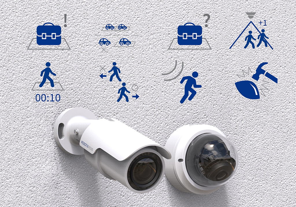Sin costes de licencia adicionales para el paquete de análisis de vídeo, que actualmente consta de 8 funciones de aplicación diferente, las Mobotix Move pueden utilizarse de forma más eficiente en numerosas aplicaciones: detección de objetos abandonados y de intrusos; sabotaje de la cámara; dirección equivocada (por ejemplo, en un recorrido de salida-entrada en aeropuertos); detección de merodeo (identifica tanto personas como coches); vehículos parados; recuento de objetos, personas o vehículos o la activación de alertas por eliminación de objetos (como un cuadro que desaparece de la pared).