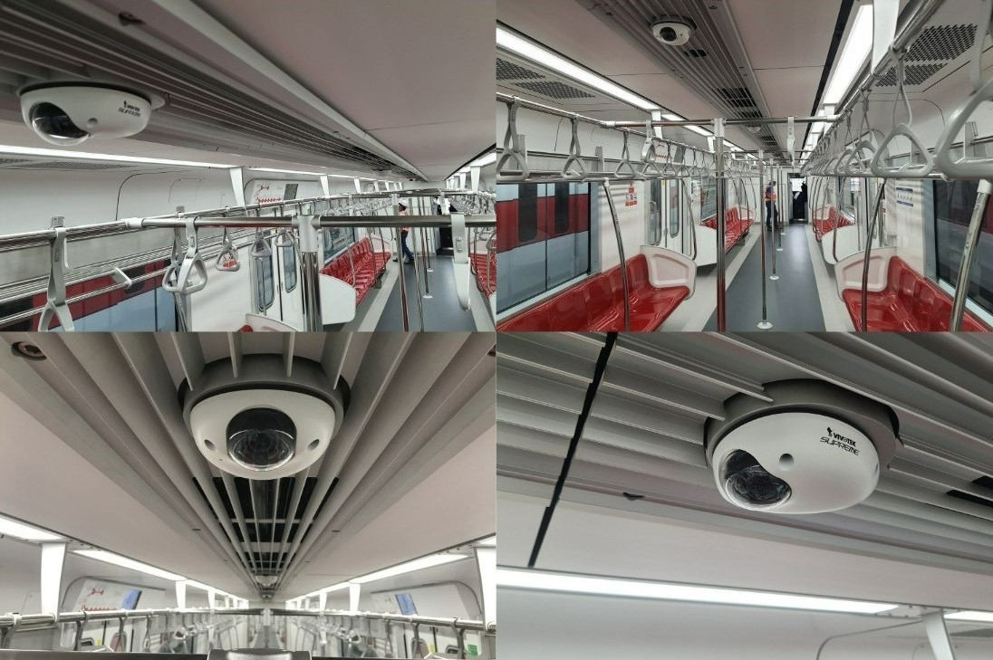 Las domo móviles Vivotek MD8563-EH se encuentran en los sistemas de seguridad de los trenes de cuatro y seis vagones de la red Mass Rapid Transit. Los 10 trenes de cuatro vagones disponen de 180 cámaras, con 18 en cada uno, mientras que los 15 trenes de seis vagones cuentan con 390 cámaras, 26 en cada tren.