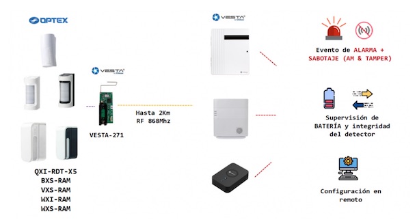 Entre otras ventajas de esta integración está contar con un sistema fiable y preciso de detección de intrusos, de sencilla instalación sin necesidad de cableado, con todos los beneficios de las tecnologías de Optex y Vesta.