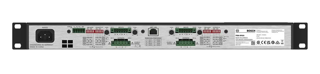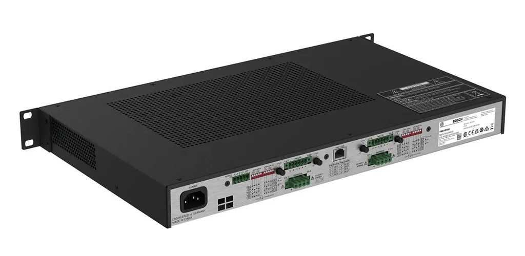 Bosch ha anunciado el amplificador de potencia multicanal PRM-4P600 para el control de sistemas de sonido en instalaciones comerciales. Es uno de los productos más potentes de su actual gama y está pensado para aplicaciones para avisos y música.