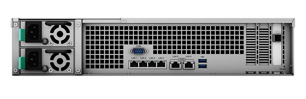 Las 12 bahías ofrecen hasta 216 TB de capacidad de almacenamiento total. En el caso de RX1223RP+ es posible ampliar hasta las 24 bahías con una unidad de expansión para obtener hasta 432 TB de capacidad de almacenamiento.