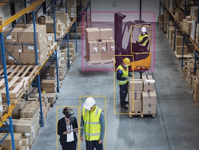 Entre otras funciones, Factory & Safety AI Pack proporciona supervisión en tiempo real de la actividad del montacargas y de los trabajadores, ofreciendo una visión completa de los procesos industriales.