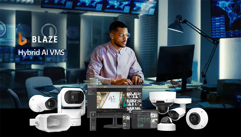 El nuevo sistema híbrido de gestión de vídeo (VMS) Blaze de Hanwha Vision, que llega acompañado de toda una gama de soluciones de hardware, habilita la gestión de los usuarios, la escalabilidad del sistema en múltiples emplazamientos e investigaciones basadas en IA aprovechando la versatilidad de las configuraciones híbridas.