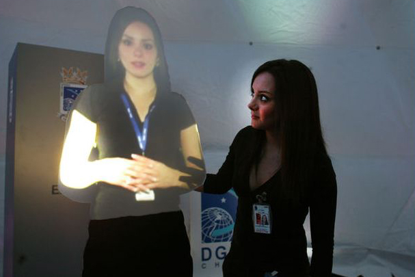 El sistema se basa en la telepresencia, that is to say, que la imagen de una persona se proyecta en tamaño real a través de un acrílico recortado en forma de silueta, un proyector de 6.000 ANSI lúmenes y programas computacionales que logran mezclar las imágenes, con el sonido y el habla de la persona proyectada.