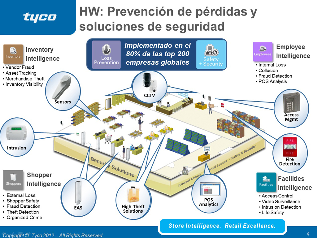 La plataforma de software extrae información de las soluciones de seguridad y rendimiento en tienda de Tyco para captar, interpretar, informar y ser capaces de reaccionar de la forma más adecuada según las necesidades del negocio contando con los datos operacionales obtenidos en tiempo real de tiendas, employees, inventario y compradores y optimizando las operaciones de retailasí como, mejorando la experiencia del cliente. La plataforma integrada ayuda a los minoristas a abordar buena parte de los objetivos más importantes: optimizar el inventario, mejorar las tasas de conversión y las estrategias de resurtido de productos en los puntos de venta, minimizar el hurto, potenciar la productividad de los empleados e impulsar el rendimiento general de la tienda.