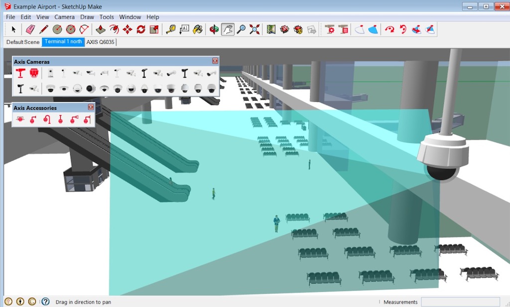 Visualización interactiva de cámaras Axis con SketchUp 3D CAD para diseñar sistemas de videovigilancia