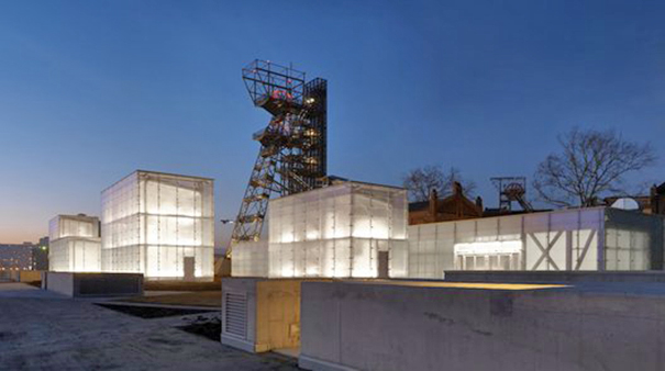 La ciudad de Katowice en Polonia está íntimamente vinculada a la industria minera y el Museo de Silesia hace honor a la urbe en la que está localizado, integrándose en el paisaje industrial de la zona. Esta edificación, que ocupa las instalaciones de la antigua mina Warszawa, se planificó para que la exposición estuviera bajo tierra quedando visible desde el exterior gracias a la estructura de cubos de cristal que son los encargados de brindar la iluminación natural.