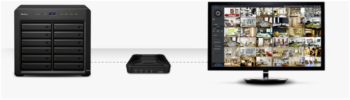 Para configurar el VS360HD, solo hay que sincronícela con un NAS de Synology con Surveillance Station 7.0 o posterior. Esta solución permite visualizar en directo hasta 36 canales en H.264 y es compatible con el formato de vídeo MJPEG o MPEG41. Al encenderlo se accede directamente al panel de visualización en directo, y es posible accionar PTZ o cambiar a línea temporal para ver eventos grabados, tomar instantáneas o exportarlas a un dispositivo de almacenamiento externo, utilizando un ratón USB.