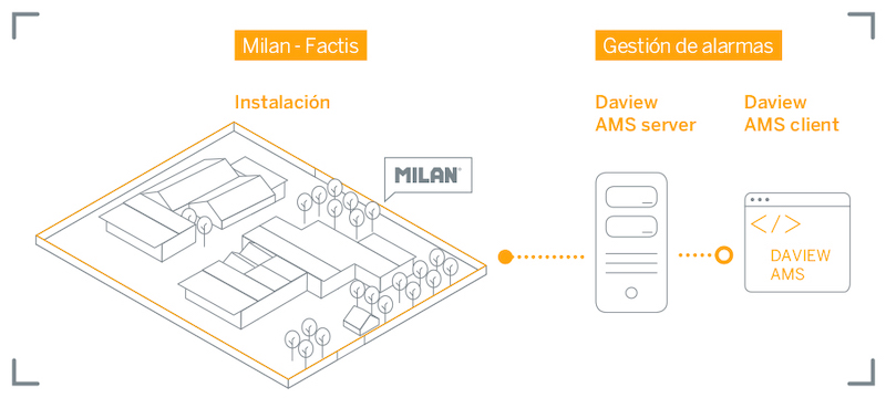 Para ello se ha integrado el sistema de vídeo análisis Daview S en el servidor Daview AMS, que actúa como una receptora convencional que permite controlar todas las instalaciones, así como con los principales software de gestión de alarmas. Este servidor de Davantis facilita la visualización de las cámaras de vigilancia en directo, la supervisión de conexión, la recepción de alarmas técnicas, la activación remota de relés y el audio bidireccional para comunicarse con las instalaciones.