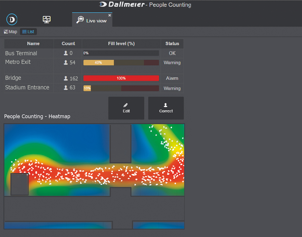 Los sistemas basados en VCA (video content analyse) e IA ofrecen hoy en día un amplio rango de funciones como herramientas de asistencia que mejoran enormemente la eficiencia de operadores y procesos, como los utilizados para analizar concentraciones de personas u objetos.