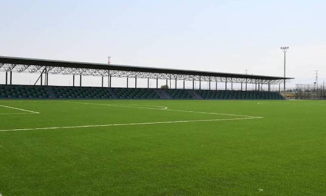 El estadio de fútbol tiene un graderío para 1.100 espectadores y en sus anexos dispone de dos campos de entrenamiento, pistas al aire libre de voleibol y baloncesto y zona de juegos infantil.