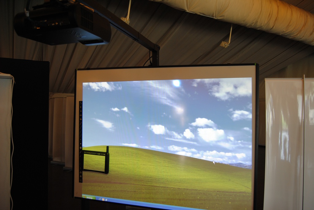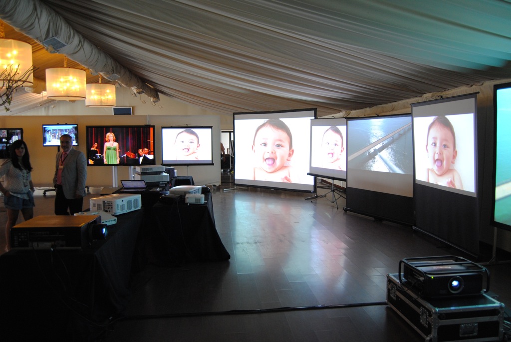 Sanyo mostraba en este tour de Crambo su proyector PLC-XF1000 que con tecnología LCD, un contraste 4.000:1 oui 12.000 lúmenes, mientras que NEC exhibía la serie NP.