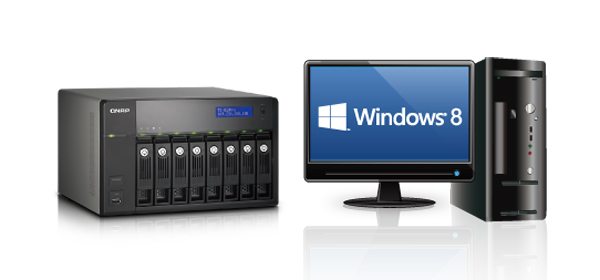 Compatibilidad con Windows 8: compatible con los protocolos de Internet Explorer 10, SMB/CIFS y FTP, la creación de objetivos iSCSI y muchas de las utilidades del Turbo NAS, como por ejemplo, Qfinder y QGet.