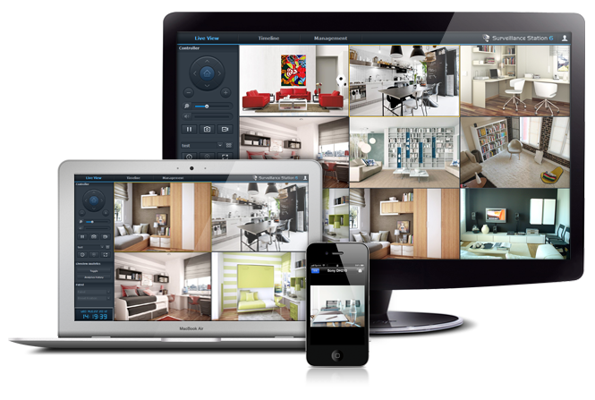 Synology también dispone de soluciones de videovigilancia como Surveillance Station, un paquete integral que proporciona una administración unificada y escalable para entornos de gran envergadura a través del sistema Central Management System (CMS). CMS permite ver imágenes en directo y grabaciones, realizar análisis de vídeo inteligente, administrar privilegios por perfiles de usuarios, recibir notificaciones de seguridad o utilizar e-maps. Todo ello centralizado en una única consola de gestión.