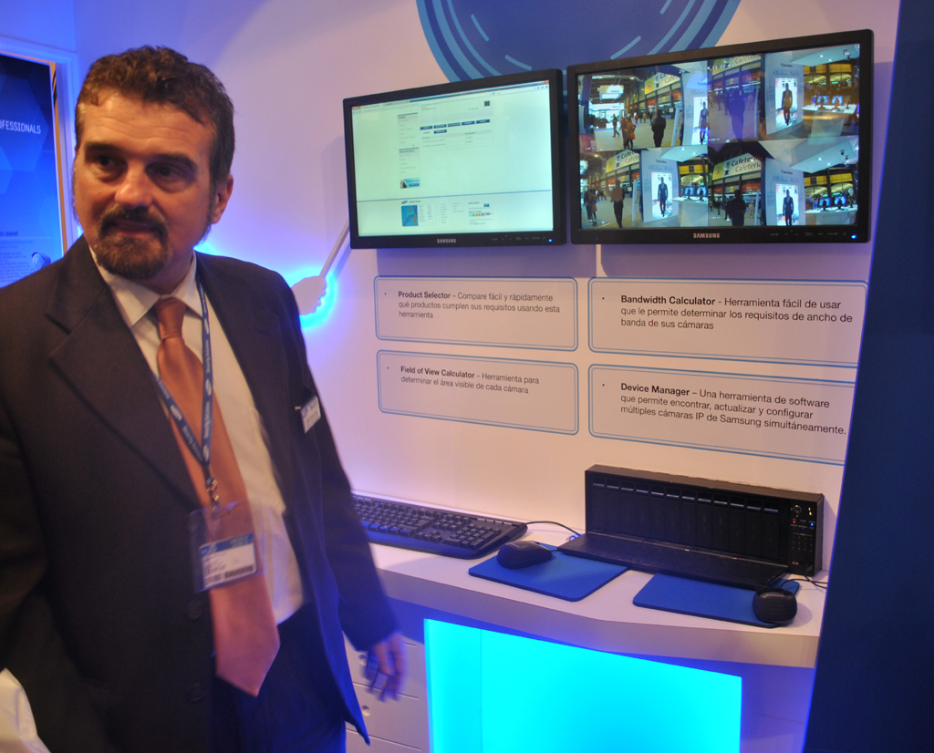 Samsung Techwin ha acudido a SICUR 2014 con una completa oferta de soluciones de videovigilancia IP pensada para mercados verticales como retail, commercial, educación o transporte. “Todas las cámaras que hemos traído a la feria son IP, que es el gran protagonista de este stand, así como nuestro chipset DSP WiseNet III que presentamos en mayo de 2013”, explica José Luis Romero, general manager España y Portugal Samsung Techwin Europe.