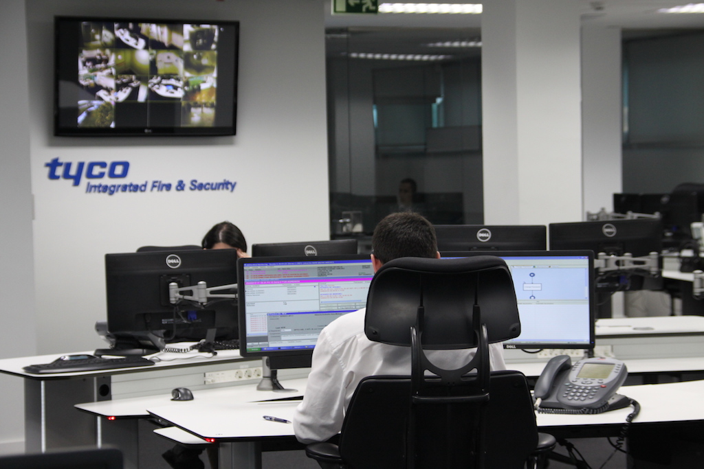 Desde la Central de Recepción de Alarmas (CRA) de Tyco se gestionan las conexiones de los sistemas de seguridad y se determinan qué acciones se deben seguir para responder a cada tipo de alarma. En caso de activación de las alarmas, comprueba el aviso a través de la vídeo-verificación y avisa a las fuerzas del orden en caso de confirmarse la incidencia. En la CRA se centralizan también otros servicios de valor añadido que la compañía oferta a sus clientes, como son las rondas de vigilancia virtuales, la realización de informes de robo y la recuperación de escuchas e imágenes de incidentes para compañías de seguros o juicios.