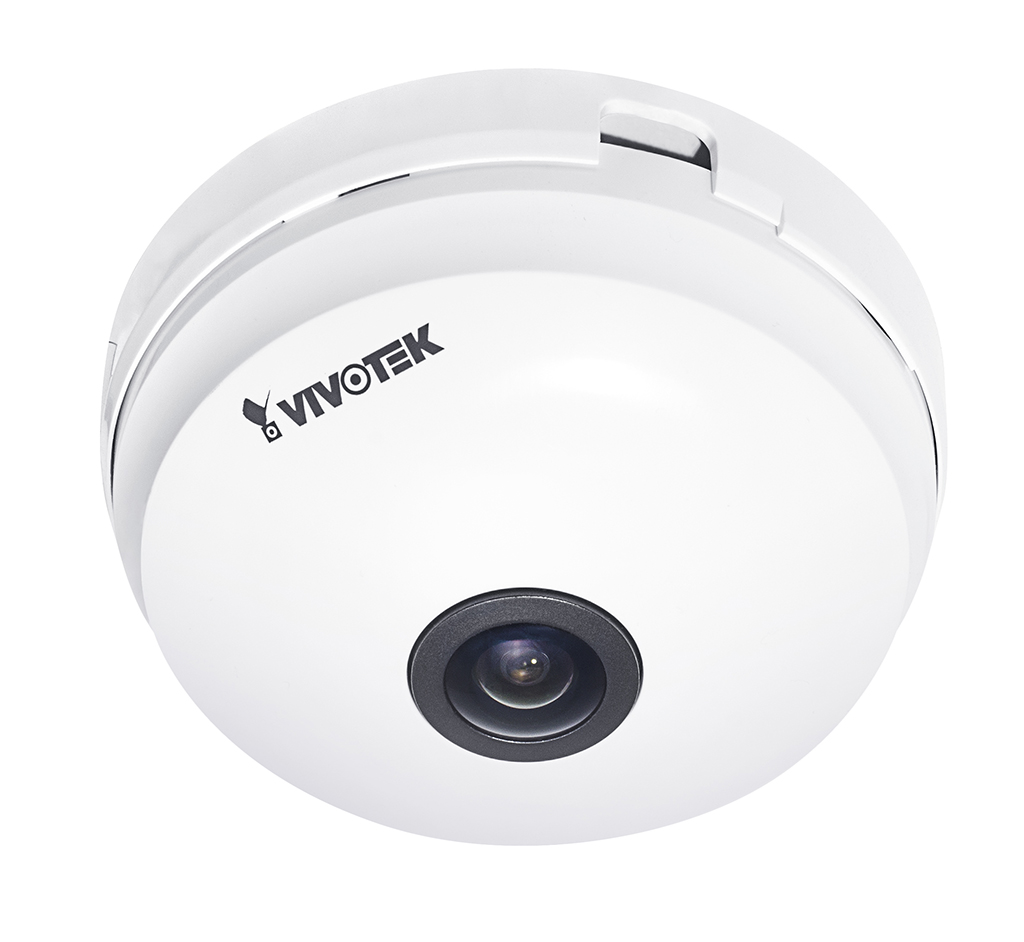 La caméra de 5 MP FE8180 de Vivotek presenta un perfil de 90 mm de diámetro e incorpora una lente ojo de pez de 1,57 mm de visión panorámica de 180° o de visión envolvente de 360°, sin puntos ciegos.