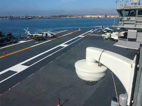 Pour ta part, los modelos FD8365HV y FD8338-HV han sido colocados en las zonas que precisan de una extrema vigilancia. Se trata de dos domos fijos de red que son capaces de soportar las inclemencias del tiempo. Sus carcasas, con clasificación IP66 e IK10, las protegen contra actos de vandalismo, por lo que fueron la opción para instalar a bordo del portaaviones.
