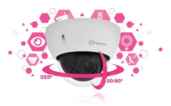Idónea tanto para instalaciones de interior o exterior, esta solución ofrece un campo de visión de 112-30° e incorpora inteligencia de inclinación y panorámica motorizadas (0-355° y 20-90°), así como funcionalidad de enfoque y zoom 4x.