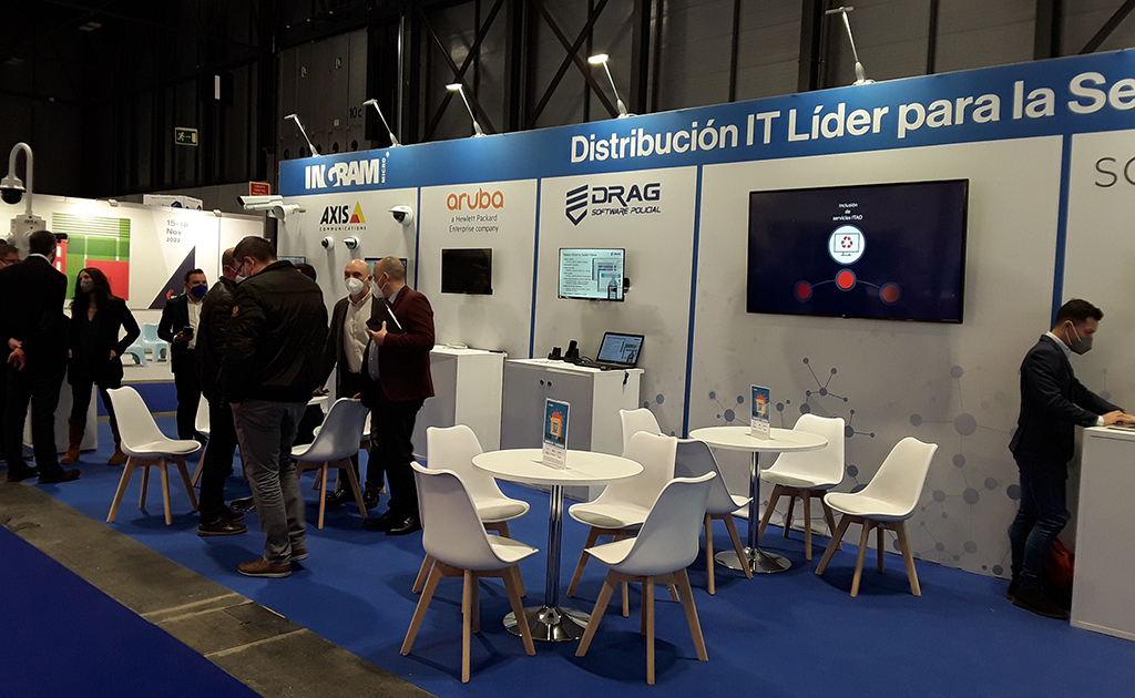 Presente en el stand de Ingram Micro, Axe ha acudido a la feria con sus últimas novedades, como el SoC Artpec-8, la cámara corporal body cam W100, soluciones de audio en red y lo más innovador de Camera Station.