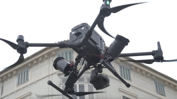El dron ha sido pilotado por personal de Telefonica Ingeniería y Seguridad (TIS), concretamente un DJI Matrice 300 RTK. El mando del dron ha sido conectado a una mochila provista con un módulo 5G que ha permitido generar un stream de vídeo que puede ser visto en tiempo real y almacenado en una plataforma de video desarrollado por Telefonica I+D para esta experiencia.