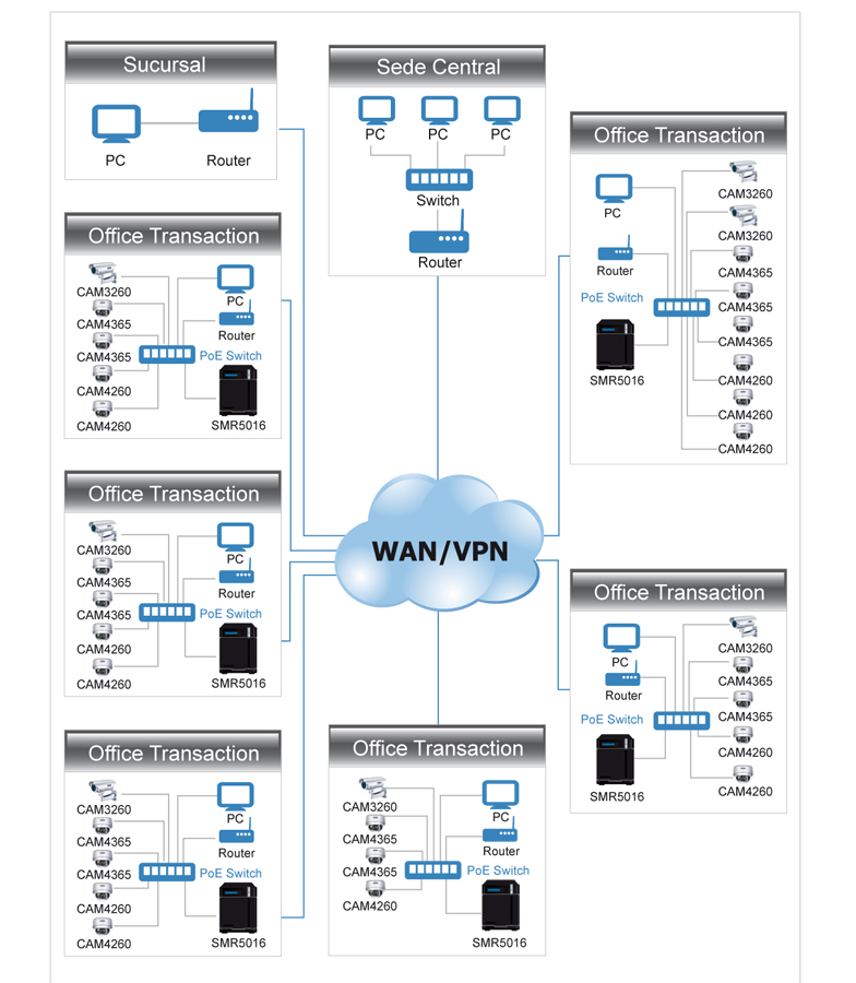 En cuanto a la implementación de la solución, el cliente requería una estructura distribuida con administración centralizada. その上, la solución tenía que ser escalable, permitiendo el cliente incorporar cámaras en lugares individuales o ampliar la cobertura de la solución incluyendo incluso nuevas áreas.