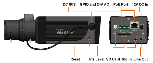 新しいカメラ エアライブ POE-5010HD de 5 megapixel Power over Ethernet tipo Box AirLive ha sido diseñada para entregar streams de video en alta definición en redes de área local. AirLive POE-5010HD incorpora un filtro de corte IR removible para visión nocturna. Una de las ventajas de esta cámara es la posibilidad de elegir varias lentes diferentes, tales como 4 mm, varifocal o lentes auto iris Tamron Varifocal.