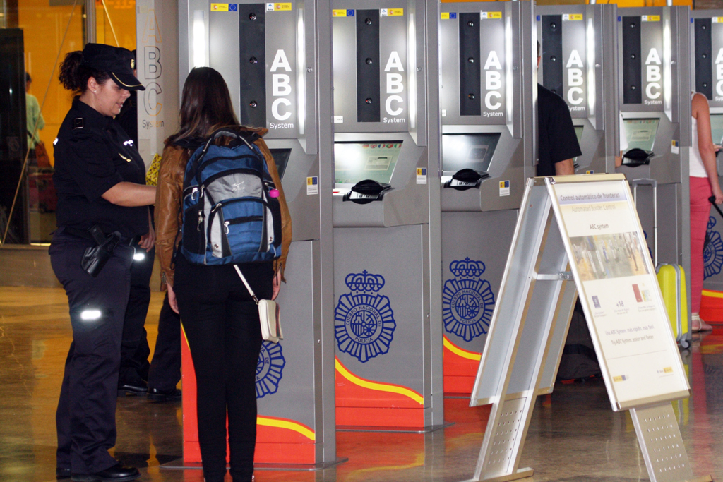 España fue en 2010 uno de los primeros países en implantar sistemas de control automáticos de fronteras. Desde entonces el ABC System se utiliza en las terminales T1 y T4 de Madrid-Barajas y en la T1 y T2 de El Prat-Barcelona. Este tipo de tecnología permite obtener el máximo partido de los nuevos documentos de identidad y pasaportes electrónicos, que incorporan sistemas criptológicos. Se mejora así la seguridad y precisión en la identificación de pasajeros y se consigue, 同時に, ahorrar costes. Al ser un servicio no atendido, permite liberar recursos humanos para otras funciones o donde se requiera una mayor vigilancia.