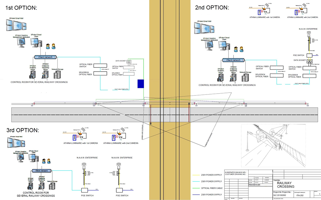 Antes esta situación la empresa nacional de ferrocarriles italiana Ferrovie dello Stato Italiane decidió instalar un sistema de vigilancia e iluminación que avisara automáticamente a la policía local de los actos de vandalismo e identificara a los delincuentes. La solución tenía que ser capaz de supervisar la escena completa a ambos lados de las barreras, así como grabar y almacenar datos.