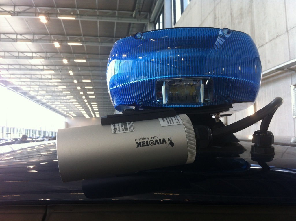 Cada coche patrulla equipa, además de la cámara interior PZ8121W, dos más del modelo IP8332 de este proveedor ubicadas en el techo exterior para realizar la videovigilancia de los vehículos que circulan en su entorno, además de integrar el sistema automatizado de reconocimiento de matrículas o placas (LPR) de Plettac para identificar los que se consideran sospechosos o robados, 等.
