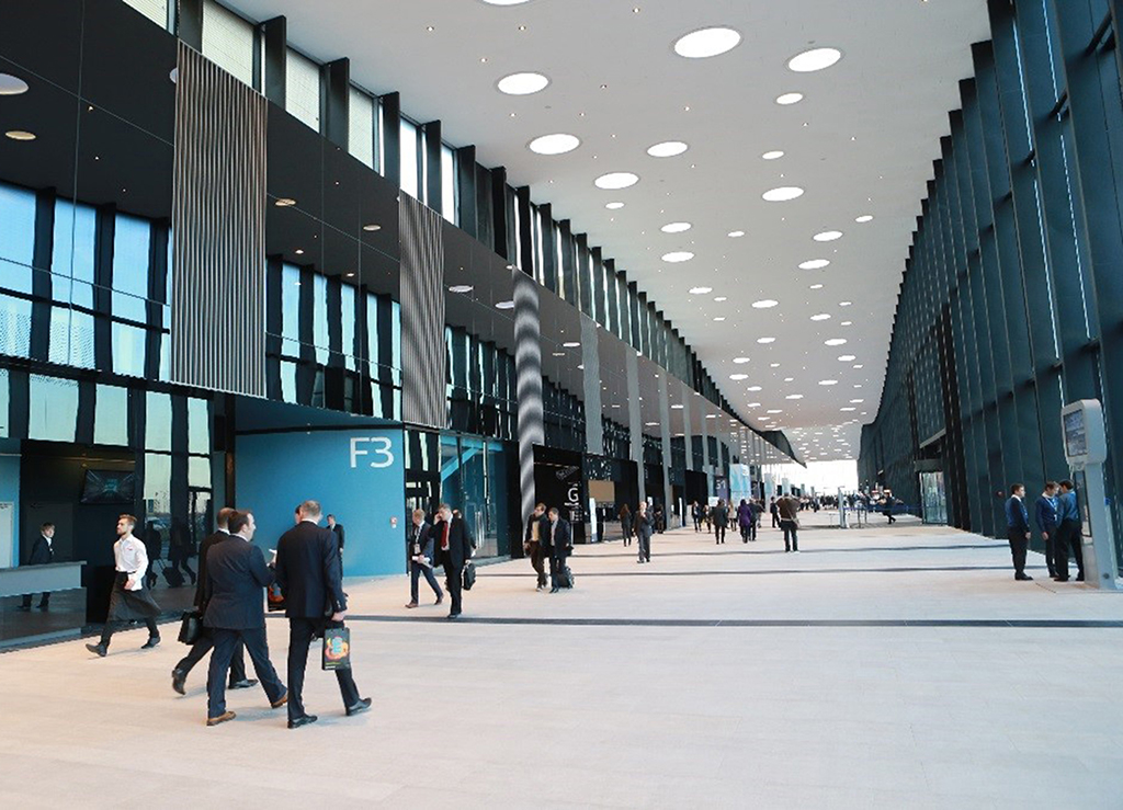 La solución de megafonía en red diseñada por Bosch para el recinto ferial de San Petersburgo, que se integra con el complejo sistema de seguridad global existente, sirve como sistema de evacuación por voz en caso de emergencia.