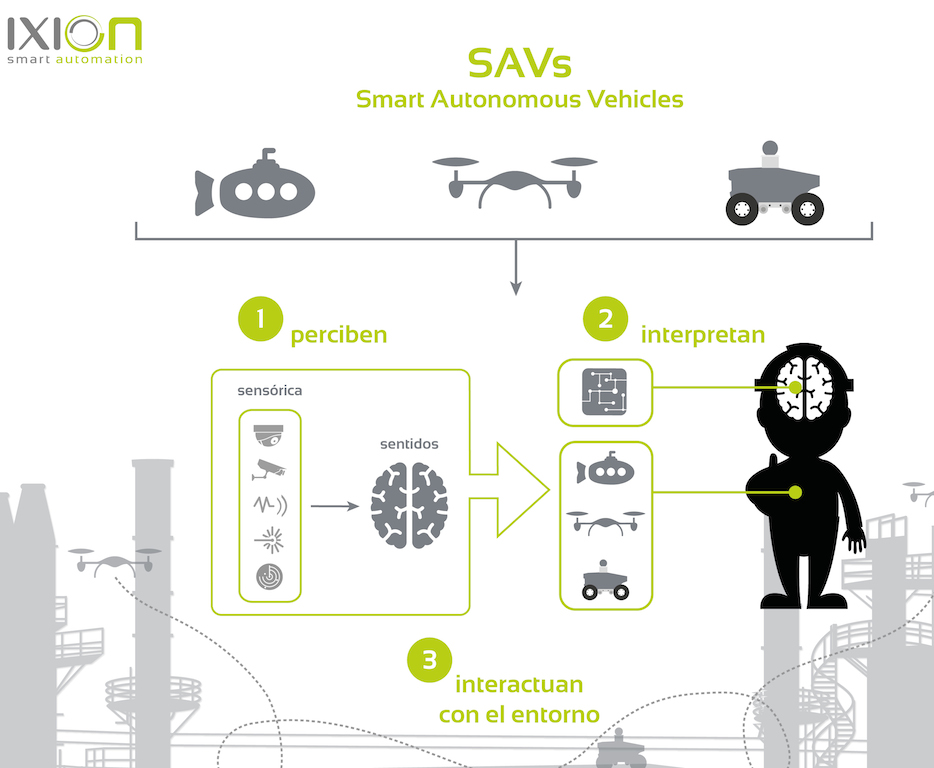 El concepto de Ixion sobre las Smart Cities va más allá, integrando los SAVs en este ecosistema, ya que son capaces de percibir el entorno mediante los sensores embarcados, pero además, lo interpretan gracias a la integración de software inteligente para la toma de decisiones autónomamente.