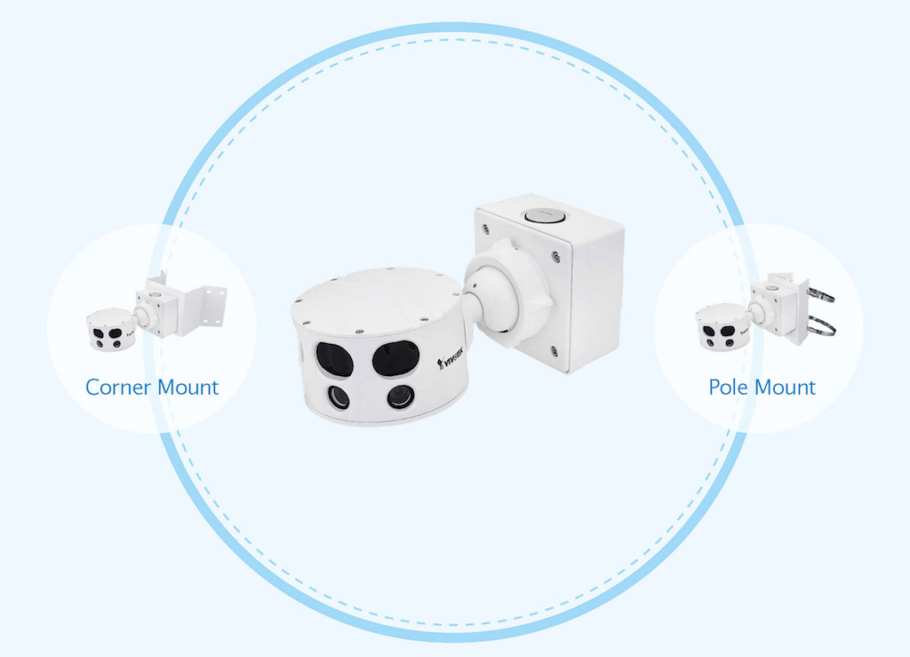 La nueva cámara IP de ヴィヴォテック MS8391-EV aporta una mayor cobertura del campo de visión, con imágenes en alta resolución, gracias a estos cuatro sensores CMOS que aportan un total de 12 メガピクセル, lo que reduce el número total de cámaras requeridas para vigilar una gran instalación, ofreciendo una videovigilancia completa sin ángulos muertos.