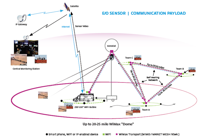 Dentro de este diseño modular y versátil, TPS puede incorporar tecnología MIMO (múltiples entradas y múltiples salidas) y ofrecer una red de comunicaciones móviles a medida de banda ancha 3G, 4G, LTE o WIMAX hasta a 32 kilómetros de distancia de un sensor E/O en áreas donde no se dispone de la infraestructura necesaria o en los que esta ha sido destruida.