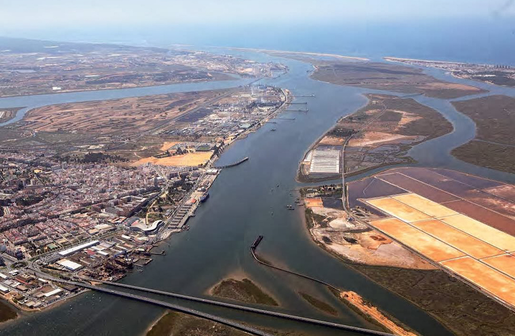 Situado en una zona de gran valor geoestratégico en las rutas de navegación, 彼 Puerto de Huelva es el mayor de España en extensión (の表面を持つ 1.700 hectáreas y 8,5 キロ. de muelles públicos y privados) y esta especializado en graneles líquidos y sólidos, además de ser un puerto industrial y energético que genera el 1,4% del Valor Añadido Bruto (1.718 百万ユーロ) そして 0,7% del empleo (17.861 puestos de trabajo) de Andalucía.