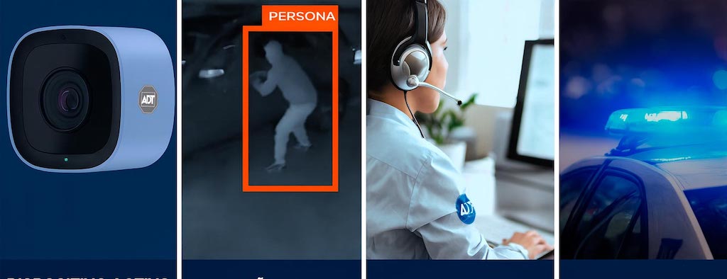 Cuando la cámara de videovigilancia exterior identifica movimiento humano en el área protegida, su IA integrada verifica y analiza si se trata de una persona real o una falsa alarma. Si se confirma el riesgo, se genera una señal de alarma que se envía a la Central Receptora de Alarmas (CRA) de ADT, donde un equipo de profesionales verifica la amenaza en tiempo real y, 必要に応じて, activa el protocolo de aviso inmediato a las fuerzas de seguridad.