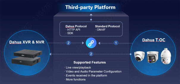 TiOC incorpora un alto nivel de interactividad con los sistemas de Dahua y terceros, brindando integración con software de monitorización de alarmas de terceros, altavoces IP y centros de alarmas, además del software de gestión de video DSS y DMSS de Dahua.