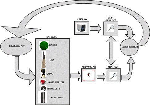 El centro de control portátil se encarga de monitorizar y gestionar la información que transmiten un variado número de sensores (雷达, láser radar, sensores acústicos y terrestres, ETC。) distribuidos por todo el perímetro de seguridad.