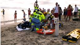 El múltiple simulacro grabado por las cámaras IP de Mobotix ha consistido en rescatar primero a dos supuestos heridos graves que habían caído al agua al desengancharse el paracaídas que arrastraba una lancha, una atracción habitual en muchas playas.