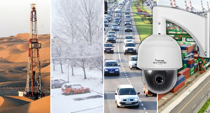 Su carcasa IP66-4X/Nema las protege contra la lluvia, el polvo y la corrosión, sobre un rango de temperatura de entre -40° a 55°C, y garantiza un funcionamiento estable en condiciones climáticas extremas y ambientes peligrosos. Con el mecanismo de giro inclinación y la función de seguimiento automático incorporado, estas cámaras de Vivotek son capaces de captar con precisión el movimiento en un ángulo de 360 grados con una inclinación de 220 度. 除了, estos equipos reaccionan instantáneamente a los objetos en movimiento sospechosas sobre áreas extensas.