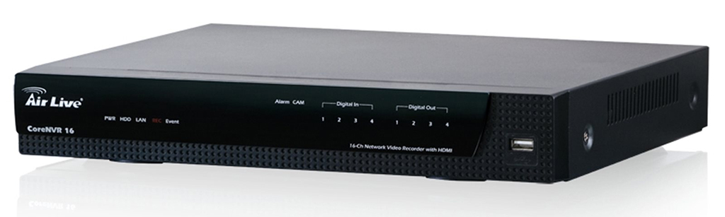 AirLive también ha suministra el NVR CoreNVR 16, que se utiliza para soportar hasta una resolución de 4 megapíxeles para cámaras IP con codificación de video H.264 para alta calidad, monitorización en tiempo real, grabación y reproducción.