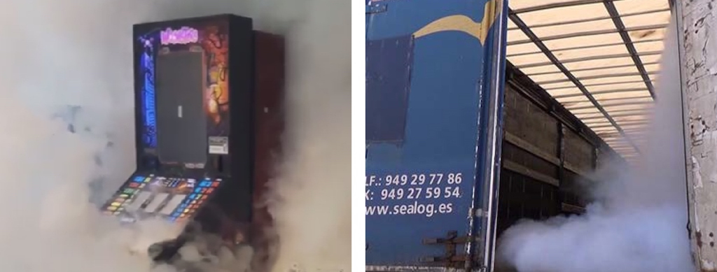 Se trata de un pequeño dispositivo que se activa cuando alguien intenta acceder a la zona a proteger, llenando la estancia de un denso humo que en pocos segundos imposibilita la visión.