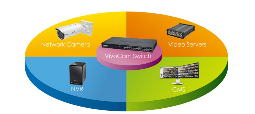 Esta red integrada por 420 cámaras IP de red y 20 conmutadores no administrados son sincronizados y controlados por el conmutador AW-GEV-264A-370 VivoCam Layer 2+. Este sistema PoE incorpora funciones de gestión de vigilancia IP y permite configurar cámaras IP, grabadoras de vídeo en red y software de gestión de vídeo de Vivotek . Este conmutador VivoCam PoE es capaz de encontrar todos los dispositivos del fabricante y desplegar automáticamente un sistema de red de vigilancia.